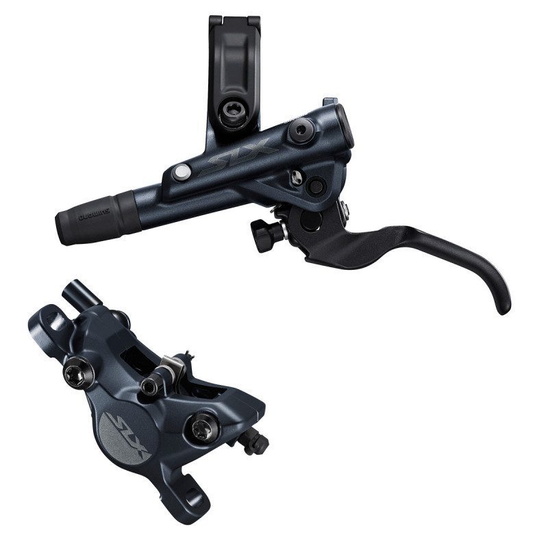 L'avis Velosetvtt.com : un frein ne souffrant d'aucun défaut, permettant au pilote Cross-Country comme à celui en All-Mountain d'évoluer en toute sécurité avec une puissance suffisante et toujours maîtrisée.Ce Frein Shimano SLX est une référence et reprend des caractéristiques de son grand frère le shimano XT comme le collier de serrage déporté, qui permet au frein de gagner pas moins de 30% de puissance au freinage . L'ergonomie reste fidèle à la marque et le réglage de la garde du levier se fait aisément via une molette située sur l'avant et est accessible en roulant.L'intérêt de ce modèle réside dans le J-Kit qui vous offrira la possibilité de monter le frein sans soucis avec un minimum d'outillage et sans avoir à purger le système.En bref un frein, surprenant par sa puissance et facile à prendre en main avec un budget des plus raisonnable pour la qualité Shimano reconnu par tout le monde . Caractéristiques techniques : - étrier deux pistons - Levier conçu pour freiner à deux doigts maximum - Réglage de la garde sans outils - Fixation à collier, compatible I-Spec EV - Huile minérale - Système J-Kit prêt à brancher et rouler