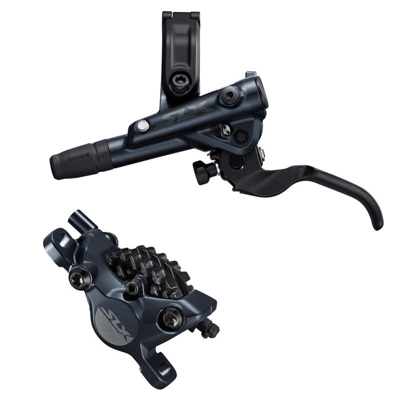 L'avis Velosetvtt.com : que ce soit sur les randos Cross-Country ou All-Mountain, vous serez surpris par la qualité de freinage et sa polyvalence, d'autant que les plaquettes ventilées apporterons un agrément supplémentaire.Revue et corrigée, la nouvelle poignée augmentera de manière significative la puissance de freinage grâce notamment au collier de fixation décalé . Toujours constituée de deux pistons mobiles, l'étrier offrira puissance et maîtrise . Enfin, Les plaquettes sur ce modèle ayant un support de garniture en Aluminium surmonté d'ailettes, assurera le refroidissement de l'ensemble . Non seulement la puissance sera supérieure mais la durée de vie des plaquettes ne sera que plus longue.L'installation est à la portée de tous avec quelques outils simple et le système étant purgé de base, il vous sera aisé de le monter et de partir rouler dans la foulée.En bref, ce frein Shimano SLX était et restera une référence dans sa catégorie avec des caractéristiques proches de son grand frère le XT mais dans un budget plus raisonnable . Caractéristiques techniques : - étrier deux pistons - Levier conçu pour freiner à deux doigts maximum - Fixation à collier, compatible I-Spec EV - Plaquettes ventilées - Réglage de la garde sans outils - Huile minérale