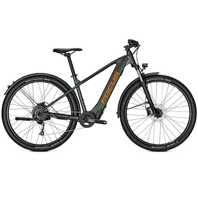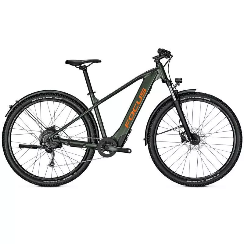 Caractéristiques - Cadre : 6061 aluminium, removable battery, internal cable routing, International standard disc brake mount, kickstand mount - Fourche : SR Suntour XCM RL, 9 mm QR, coil spring, remote, 100 mm travel - Moteur : Groove Next, 36 V/250W/32 Nm - Batterie : Groove Next Li-Ion, 252 Wh - Manette : Shimano Altus M2000 - Dérailleur arrière : Shimano Altus M2000, 9-speed - Cassette : Shimano HG200, 11-36T - Pédalier : Samox AF38, 34T - Boitier de pédalier : Groove Next with Torque/ RPM Sensor, 120x68 mm - Cintre : Riser, aluminium, 720 mm - Grip : FOCUS Ergo - Potence : Aluminium, 31.8 mm - Jeu de direction : VP Components - Selle : FOCUS Sport Saddle - Tige de selle : Aluminium, 27,2 mm - Freins : Shimano BR-MT200, hydraulic disc, 180/160 mm - Roues : Rodi Viper 21, TX505 front hub, 9 mm QR, Groove Next rear hub motor - Pneus : Schwalbe Smart Sam 2.1 - Garde-boue : Buechel aluminium, 60 mm - Béquille : Rear stand, adjustable - Phare avant : AXA Blueline 30 Lux - Phare arrière : Herrmans H-Trace Mini, LED - Coloris : Moss Green - Tailles : S / M / L / XL - Poids constructeur : 23,8 kg