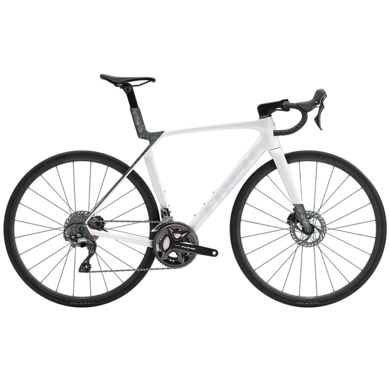 Caractéristiques techniques : - Cadre : Carbone OCLV Série 500, IsoSpeed avant & arrière, espace de rangement interne BITS, douille de direction conique, acheminement interne des câbles, mât de selle à micro-réglage, maintien de chaîne 3S, compatible DuoTrap S, fixations pour garde-boue, freins à disque à fixation Flat-Mount, axe traversant 142x12 mm - Fourche : Domane SL carbone, pivot conique carbone, acheminement interne des câbles de frein, fixations pour garde-boue, freins à disque à fixation Flat-Mount, axe traversant 12x100 mm - Pédalier : Shimano Ultegra R8000 - Boitier de pédalier : Praxis, T47 fileté, roulement interne - Cassette : Shimano Ultegra HG800-11, 11-34, 11 vitesses - Chaine : Shimano Ultegra HG701, 11 vitesses - Dérailleurs avant/arrière : Shimano Ultegra R8000 - Poignées : Shimano Ultegra R8020, 11 vitesses - Freins : - Cintre : Bontrager Elite IsoZone VR-SF, alliage, 31,8 mm, acheminement interne, profondeur de 75 mm, hauteur de 128 mm - Tige de selle : Tête de mat de selle carbone Bontrager, fixation intégrée pour feu, déport de 20 mm - Potence : Bontrager Pro, 31,8 mm, compatible Blendr, 7 degrés - Selle : Bontrager Arvada Comp, rails en acier, largeur de 154 mm - Roues : Bontrager Paradigm Comp 25, Tubeless Ready, largeur de jante de 25 mm, corps de roue libre Shimano 11 vitesses, axe traversant 142x12 mm / 100x12 mm - Pneus : Bontrager R2 Hard-Case Lite, tringle en aramide, 60 tpi, 700x32C - Coloris : Couleur / Matte/Gloss Trek Black - Poids : 9.22 kg (T:56) - Tailles : 47 / 50 / 52 / 54 / 56 / 58 / 60 / 62 cmCe vélo présente un poids total maximal de 125 kg (comprenant le poids du vélo, du cycliste et de transport).