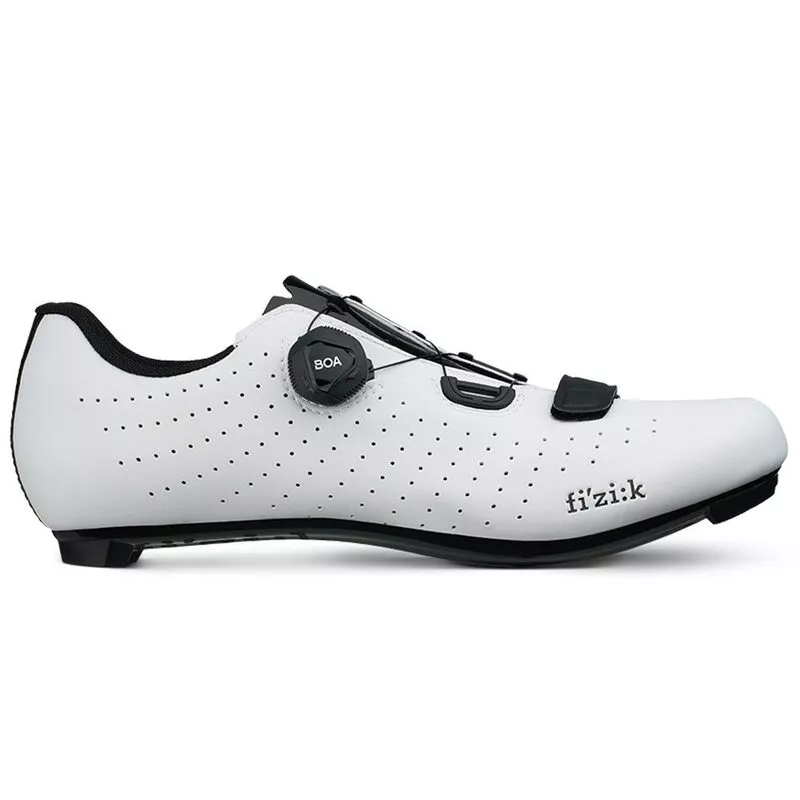 Caractéristiques techniques - Semelle à 15% de carbone - Serrage BOA IP1 - Forme asymétrique - Look sobre et sportif - Excellente ventilation de la semelle et de la chaussure - Poids 460 grammes en 42 - Coloris Noir, Navy (bleu foncé) ou blanc - Pointures du 39 au 47 - Marque Fizik