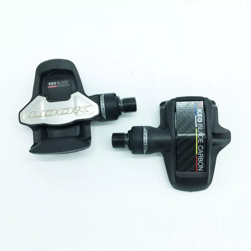 Caractéristiques techniques - Corps : Carbone - Axe :Titane - Filetage : 9/16 X 20 mm - Roulements en céramiques - Hauteur pédale-cale : 14,8 mm - Largeur d'appui : 67 mm - Surface d'appui : 700 mm²; - Cales : Cales Kéo Cleat Grises (fournies) - Liberté angulaire : 0°, 4,5° ou 9° selon le type de cale (Noire, Grise, Rouge) - Poids pédale : 95 gr (248 gr la paire avec cales et vis) - Coloris : Noire - Accessoire : 1 paire de lames supplémentaires + 1 paire de cales Kéo Cleat Grises + visserie - Marque Look