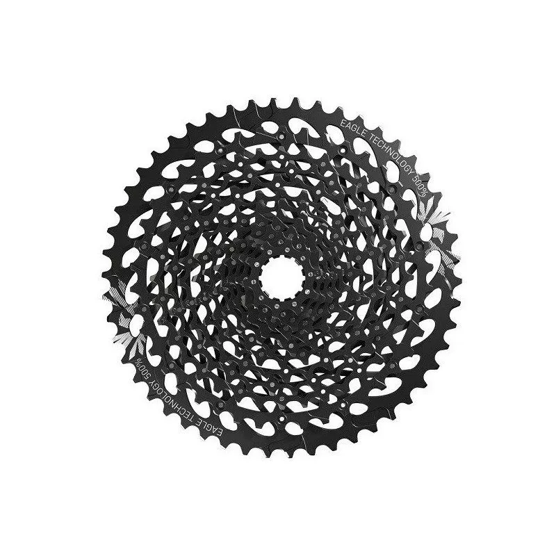Caractéristiques - 12 vitesses - Etagement: 10-12-14-16-18-21-24-28-32-36-42-50 - Matériau: 11 pignons en acier estampé, pignon de 50 dents en aluminium - Coloris: Noir - Montage sur coprs de roue libre de type XD - Compatible uniquement avec les chaînes Sram Eagle - Cassette compatible avec les groupes Sram 12 vitesses - Poids constructeur : 450 g