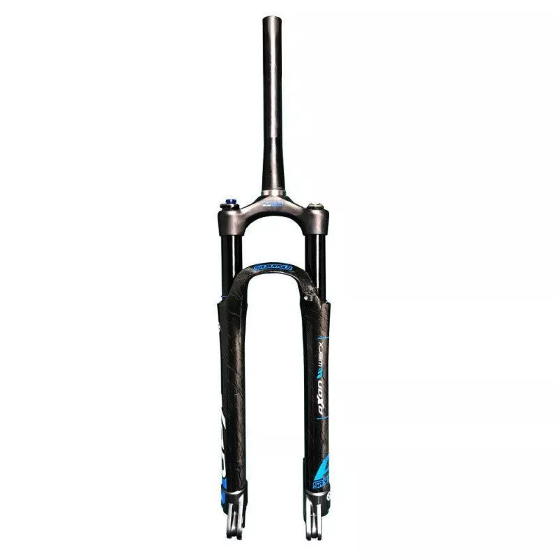 Caractéristiques techniques : - Débattement : 100 mm - Taille de roue : 29" - Cartouche hydraulique : RLRC-PCS - Ressort : Pneumatique - Freinage : Postmount avec un disque de 160mm maximum - Douille de direction conique 1,5" et 1"1/8 - Pivot : conique en carbone - Jambages : carbone unidirectionnel et support de roues en Magnésium - Té : Carbone - Axe : 15QLC-2Ti-100 / 100x15mm - Coloris plongeurs : Noir ou Gold - Poids : 1440 grammes ( pivot non coupé ) Livré avec Le blocage de roues Q-loc2TI, blocage déporté et expandeur de direction.