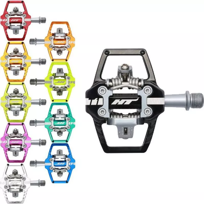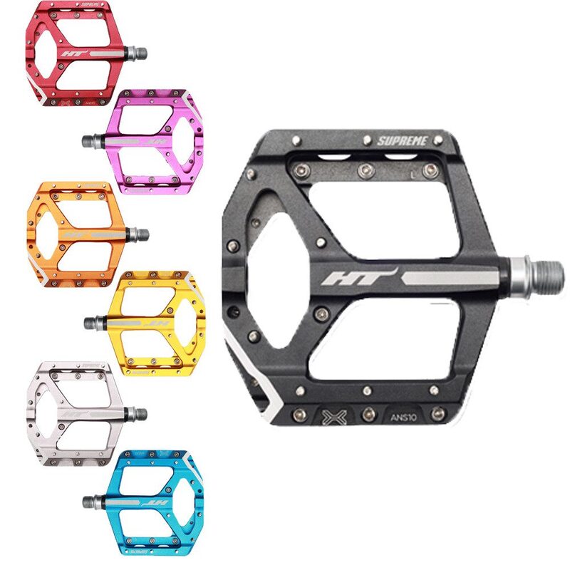 Caractéristiques techniques : - Corps aluminium extrudé puis usiné CNC - Axe Cr-moly usiné CNC - Roulements à rouleau avec bague DU - Système de cales H30/X1 - Compatible avec les cales HT Components X1E/X1X1F - Picots remplaçables - Dimensions : 68 x 83,5 x 16,8 mm - Coloris : noir, rouge, argent, vert pomme, vert cyan, or, bleu marine, orange, violet, jaune - Poids constructeur : 365 grammes la paire + 63 grammes de cales
