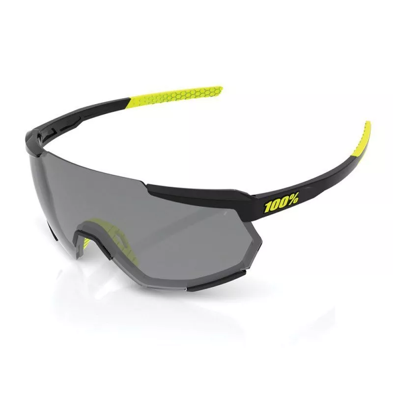 Caractéristiques techniques : - Monture TR90 ultra légère, résistante et flexible - Verres fabriqués en France - Traitement hydrophobe, oléophobe, anti-rayures et anti-éclats des verres - Grip au niveau des branches et du pont de nez ajustable - Protection catégorie 3 (UV400) - Transmission lumineuse : 12% - Livré avec : un étui rigide, un étui de nettoyage souple en microfibre, verres fumés, verres transparents, pont de nez supplémentaire . - Coloris : glossy black