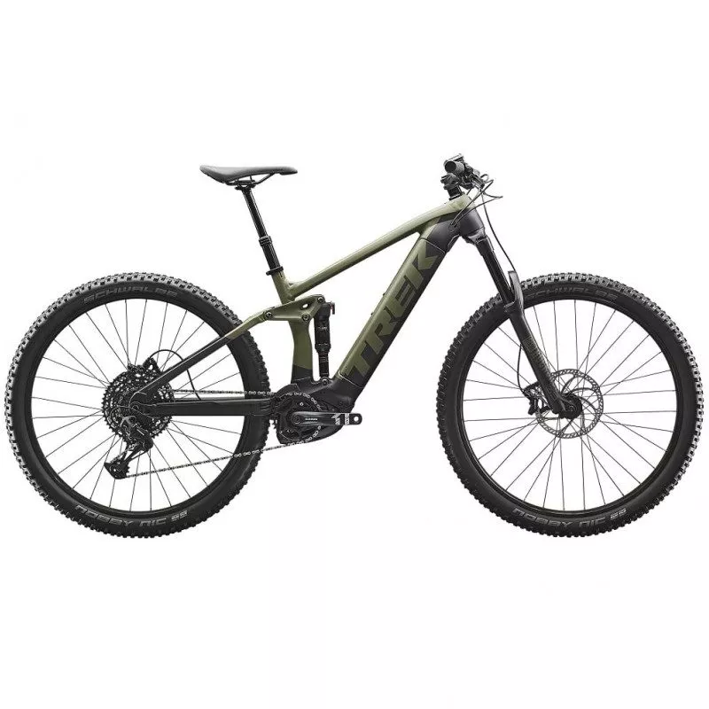 CARACTéRISTIQUES TECHNIQUES : - Moteur : NEW Bosch Performance Line CX, 250 Watt, 75 Nm, magnesium body, 25 km/h max assist - Batterie : Bosch PowerTube, vertical, 625 wh - Commande : Bosch Purion - Chargeur Bosch standard 4 A (220-240 V) - Cadre : Alpha Platinum Aluminium, Removable Integrated Battery (RIB), tapered head tube, Control Freak internal routing, magnesium rocker link, Motor Armour, Mino Link, ABP, Boost148, 12 mm thru axle, 150 mm travel - Fourche : RockShox 35 Gold RL, DebonAir spring, Motion Control damper, e-MTB optimised, tapered steerer, 44 mm offset, Boost110, 15 mm Maxle Stealth, 160mm travel - Suspension arrière : RockShox Deluxe RL, 230x57.5 mm - Roues : Alex MD35, Tubeless Ready, 32-hole, 35 mm width, Presta valve, Bontrager alloy, sealed bearing, alloy axle, 6-bolt, Shimano 8/9/10 freehub, Boost/110/148mm, 15/12 mm thru axle - Pneus : Schwalbe Nobby Nic Performance, tubeless, aramid bead, 29x2.60" - Leviers : SRAM SX Eagle single-click, 12-speed - Dérailleur arrière : SRAM SX Eagle - Pédalier : SRAM X1 1000, 34T - Cassette : SRAM PG-1210 Eagle, 11-50, 12-speed - Chaine : SRAM SX Eagle, 12 speed - Pédales : VP-536 nylon platform - Selle : Bontrager Arvada, steel rails, 138 mm width - Tige de selle télescopique : TranzX JD-YSP18, internal routing, 31.6 mm - Cintre : Bontrager alloy, 31.8 mm, 15 mm rise - Potence : Bontrager Rhythm Comp, 31.8 mm, Knock Block, 0-degree - Grips : Bontrager XR Trail Comp, lock-on - Jeu de Direction : Knock Block Integrated, cartridge bearing, 1-1/8" top, 1.5" bottom - Freins à disque hydrauliques : Tektro HD-M745 4-piston hydraulic disc - Poids : 23.53 kg en taille M - Couleur : Matte Olive Grey/Trek Black - Taille : S, M, L, XL