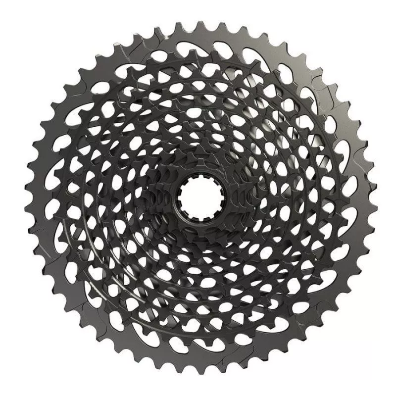 Caractéristiques - 12 vitesses - Etagement: 10-12-14-16-18-21-24-28-32-36-42-50 et 10-12-14-16-18-21-24-28-32-36-42-52 - Matériau: 11 pignons en acier estampé, pignon de 50 dents en aluminium - Coloris: Noir - Montage sur corps de roue libre de type XD - Compatible uniquement avec les chaînes Sram Eagle - Cassette compatible avec les groupes Sram 12 vitesses - Poids constructeur : 450 g