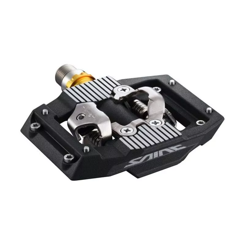 Caractéristiques techniques - Axe Acier chrome molybdène - Corps de pédale Aluminium - Finition anodisée - Très bonne évacuation de la boue - Picots modulables - Tension du ressort réglable - Compatible avec les cales Shimano SPD SH-56 - Couleur : Noir - Poids de la paire : 392 grammes (poids constructeur)Pédales vendues par paire avec un jeu de cales.
