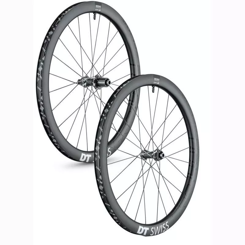 Caractéristiques techniques : - Poids constructeur : 1740 grammes la paire - Hauteur de Jante : 32mm - Largeur de jante : extérieure-21.5mm, intérieure-18mm - Piste de freinage aluminium - Jante à pneu - Compatibles pneu tubeless - Rayons DT Aero Comp (20 avant/24 arrière) - Rayonnage radial avant et croisé par 2 arrière - Roue libre Ratchet System - Base des moyeux 350 - Très solide : jusqu'à 120kg sans problème Les roues sont vendues par paire avec blocages rapides DT Swiss RWS, fonds de jante et valves tubeless.Si vous désirez un changement de corps de roue libre, nous vous invitons à prendre contact avec notre service client au 04.74.694.694 .