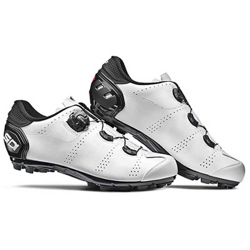 Caractéristiques techniques - Semelle nylon composite avec renforts PU - Semelle très rigide et réglé au millimètre pour les cales - Système de serrage simple Tecno 3 Push - Tige Microfibre Microtech - Système de maintien du talon réglable Adjustable Heel Retention - Talonnettes interchangeables - Respirantes et très confortables - Crampons inférieures avec un bon débourrage - Tailles 38 è 48 - Coloris noir/blanc - Marque Sidi