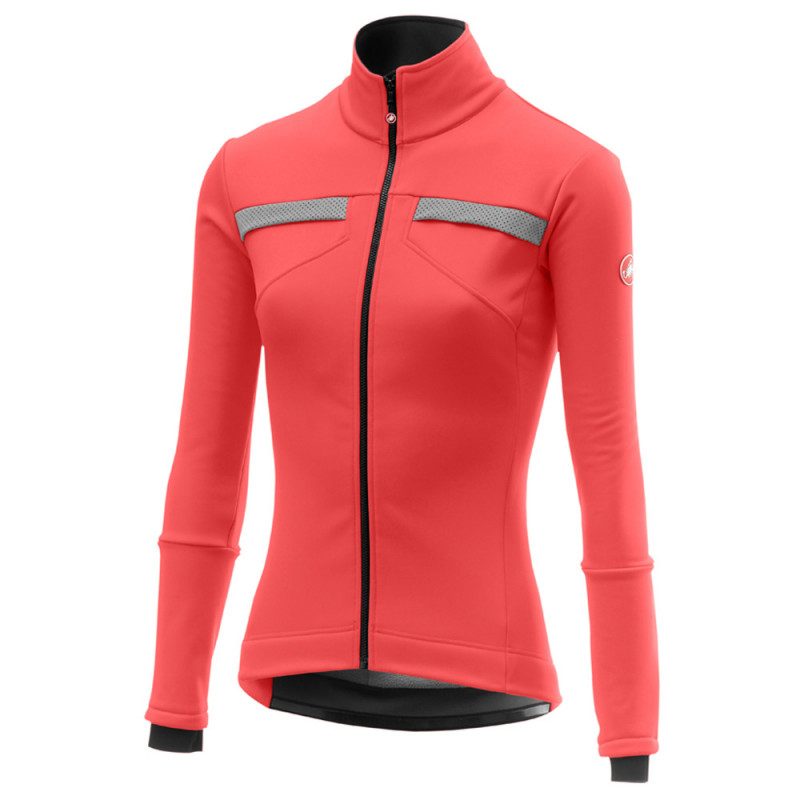 Caractéristiques techniques : - Coupe confortable et féminine - Plage d'utilisation : 2 è 10°C - Tissu Gore-Tex Windstopper X-fast chaud, coupe-vent et deperlant - Intérieur en polaire respirante - Fermeture YKK - 3 poches dorsales - Inserts réfléchissants sur les poches et le buste - Coloris : corail, gris, noir et vert bianchi - Guide des tailles Castelli