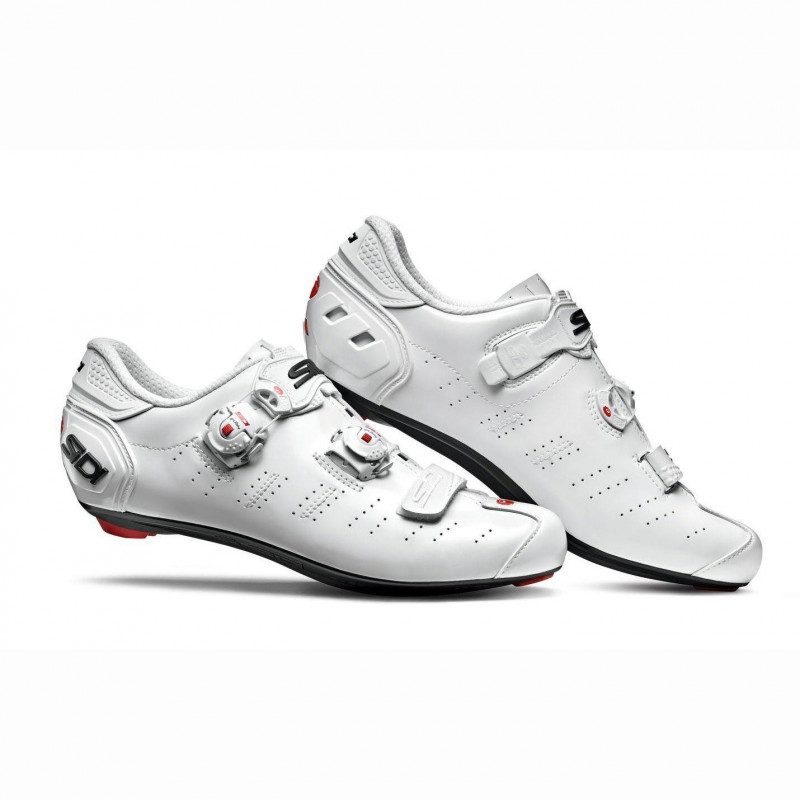 Caractéristiques techniques - Semelle carbone-nylon - Serrage Tecno 3 Push - Talon coque pour une stabilité du coup de pédale - Tige en microfibre made in Italie - 1 velcro sur l'avant du pied pour le maintien - Coloris blanc, rouge mat, noir, blanc détail noir et gris détail rose (Giro) - Marque SidiConseil : Sidi chausse petit, nous vous conseillons de prendre une pointure au dessus de votre pointure de ville.
