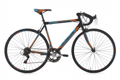 en route pour la prochaine etape le velo de course piccadilly de ks cycling est l engin ideal pour les debutants les cyclistes de loisir et pour tous ceux qui souhaitent se remettre en selle avec ce velo vous depasserez tout le monde le design sportif est present du cadre jusqu a la selle avec ces decorations orange et bleu cadre velo de course en acier fourche course avec tige 1 1 8 jeu de direction ahead 1 1 8 potence aluminium ahead 1 1 8 guidon course en acier moyeux av a attache rapide en acier et ar roue libre en acier pneus course m traxxetnbsp 700x23c 23 622 jantes aero en aluminium avec indicateur d usure changement de vitesses 14 vitesses plateaux 48 38 dents derailleur ar shimano rd a 050 derailleur av sunrun leviers de vitesses shimano sl a 050 pignon roue libre 28 14 dents pedalier acier avec 2 plateaux 48 38 dents roulement de pedalier bsa a cartouche pedales resine selle selle course tige de selle acier droite o 25 4 mm fixation de selle anneau de serrage a vis en aluminium freins freins de course dual pivot leviers de freins de course en aluminium poids environ 14 5 kg