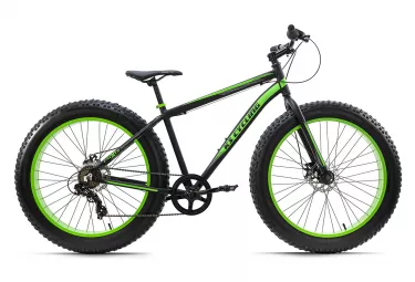 circuler sur des terrains difficiles comme le sable la boue ou encore la neige ne sera plus un probleme grace aux enormes pneus malgre cela la resistance au roulement est etonnamment faible sur terrain normal la fourche est presque superflue tant les enormes pneus possedent un confort det 39 amortissement hors du commun le velo est equipe det 39 un derailleur shimano 7 vitesses le freinage est assure par des freins a disques mecaniques cadre aluminium fatbiketaille de cadre 46 cmcouleur noir vertfourche oversized fatbike en acier 1 1 8etquot jeu de direction aheadpotence aluminium ahead 1 1 8etquot guidon vtt en aciermoyeux axe pleinjantes fatbike en aluminium 36 rayons sur chaque jantepneus fatbike freins a crampons 26etquot x 4etquot vitesses derailleur 7 vitessesderailleur ar shimano tourneyleviers de vitesses poignee tournante shimano revoshiftpignon roue libre shimano mf tz500 14 28 dents pedalier acier pedalier 44 dents roulement de pedalier roulement a conepedales resineselleetnbsp vtttige de selle droite en acier etoslash 27 2 mmfixation de selle anneau de serrage a visfreins a disque mecaniques avec disque wave etoslash 160 mm leviers de freins aluminium compositepoids environ 21 kg