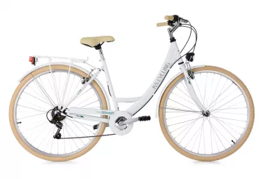 l elegance de la tete aux pieds le velo de ville 28 toscana de ks cycling est le compagnon ideal pour tous vos trajets grace au derailleur shimano 6 vitesses vous circulez a travers la ville sans soucis l eclairage a pile vous permet de rouler en toute securite meme quand il fait sombre l equipement complet du toscana avec porte bagages sonnette et catadioptres en fait le partenaire parfait pour vos deplacements quotidiens cadre hi tenetnbsp en aciertaille de cadre 48 cmcouleur blancfourche en acier tige filetee 1 1 8 jeu de direction pour fourche fileteepotence tige acierguidon aciermoyeux pleinsjantes aluminium double paroi avec indicateur d usurepneus ville 37 622 700 x 35c vitesses derailleur 6 vitessesderailleur shimano tourneyderailleur avant manette de vitesses poignee tournante sram mrxpignon roue libre 6 vitesses 28 14 dents pedalier acier plateau 36 dents roulement de pedalier aetnbsp cartouche bsa 68pedales resineporte bagages acier avec clapet a ressortsgardes boue tole d acierselle selle villetige de selle acier droit o 25 4 mmfixation de selle anneau de serrage a visfreins freins v brakeleviers de freins aluminium compositephare avant halogene avec reflecteur integre piles non inclues 2 x aa feu arriere a diodes avec reflecteur integre piles non inclues 2 x aa dynamo bequille accessoires protege chaine sonnettepoids environ 16 5 kg