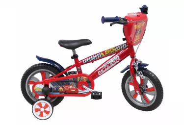 velo 12 cars pour enfant de 3 a 5 ans cadre acier direction et pedalier en nylon transmission monovitesse pignon fixe freins avant calliper carter de chaine integral gardes boue et poignees specifiques pour augmenter la protection de l enfant roues batons stickees pneus eva increvables stabilisateurs montage sans outil plaque decorative avant avertisseur sonore