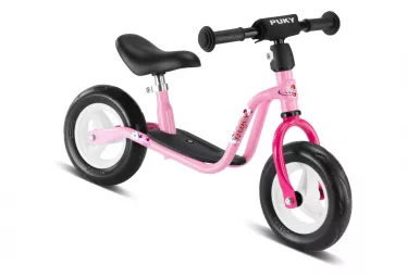 la draisienne puky lr m est l introduction ideale pour les enfants a partir de 2 ans aucun autre vehicule n offre autant de plaisir d agilite et entraine a la fois le systeme locomoteur et le sens de l equilibre les pneus de 8 4 pouces sont sans entretien offrent une bonne adherence et sont en meme temps silencieux les poignees de securite protegent les mains delicates des enfants et desamorcent les extremites du guidon la selle banane relevee a l avant assure que l elan acquis est egalement transfere au vehicule sans que l enfant ne glisse vers l avant de la selle le marchepied bas permet une montee et une descente en toute securite la grande surface du marchepied permet au jeune pilote de poser les pieds en descente assurant ainsi un centre de gravite favorable et un maniement sur meme a des vitesses plus elevees details convient aux enfants a partir de 2 ans taille de l enfant 85 a 110 cm selle speciale pour draisienne pneus 8 4 souples de haute qualite poignees de guidon de securite revetement par poudre resistant aux chocs roulements a billes pour les roues et la direction pneus en mousse de haute qualite selle et guidon reglables en hauteur cadre avec entree et marchepied bas protection au niveau du guidon poids 3 50 kg charge totale 25 kg max hauteur du marchepied 30 a 43 cm coloris rose reference 00004061 attention a utiliser avec un equipement de protection ne pas utiliser dans la circulation routiere