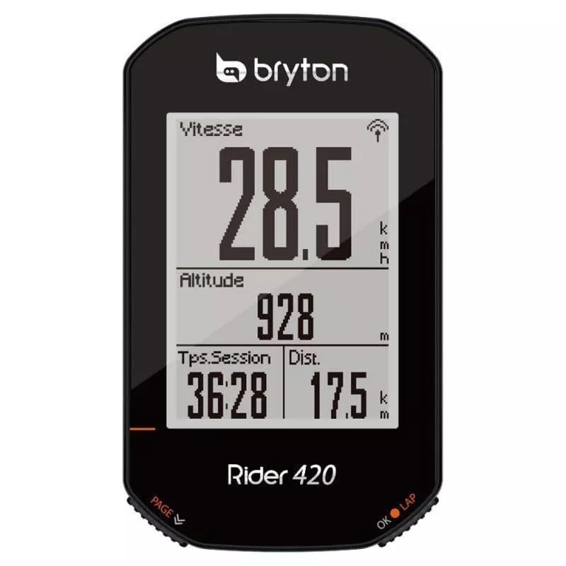 Caractéristiques techniques : - Compatible ANT+ et Bluetooth 4.0 - Transmission des données par Bluetooth 4.0 - Réception satellite GPS, Galiléo, Glonass, Beidou et QZSS - Autonomie de 35 heures - 5 pages personnalisables - 8 données par page - Ecran de 2.3'' (avec affichage à collage optique de haute qualité) - Poids : 67g - 300 heures d'enregistrement (ou 130 tours) - +80 fonctions - Altimètre barométrique - Notifications appels et sms - Compatible Strava, Training Peaks, Komoot, Ridewith GPS - Association avec les applications Bryton Active et Bryton Update Tool - Dimensions : 49.9x83.9x16.9mm - Marque : BrytonDans la boite : le Bryton 420, un câble de recharge, support de cintre classique, dragonne de sécurité et le guide de démarrage rapidePour un parfait fonctionnement, il est nécessaire de faire une mise à jour régulière sur Bryton Update Tool.Le test du compteur Bryton 420 sur Velotech.fr, c'est velotech.fr : Test du GPS Bryton 420 : un compteur vélo aux 35 heures.