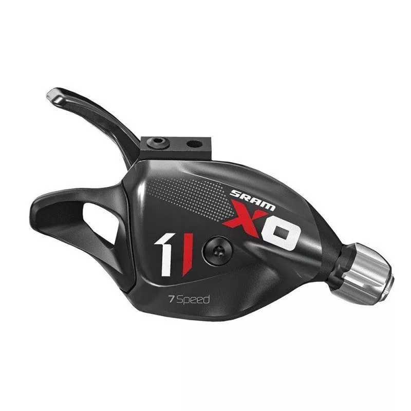 Caractéristiques : - Commande trigger multi-réglages - Compatible avec Matchmaker X - Enveloppe en aluminium et levier de vitesse en aluminium forgé - Vendu avec collier - Couleur : Noir avec logo noir / Noir avec logo rouge - Poids : 125g - Vitesses : 7 - Groupe recommandé : X01DH