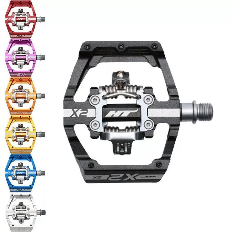 Caractéristiques - Dimensions de la plateforme : 85 x 94 x 14 mm - Corps en aluminium extrudé, usiné CNC - Axe usiné CNC cr-moly - Roulements : rouements graissés, bagues IGUS - Compatible avec les cales HT Component X2, X1, X1F - Picots remplaçables - Coloris : noir, beu marine, jaune, orange, violet, rouge, argent - Poids constructeur : 460 g par paire Pédales vendues par paires, avec cales.