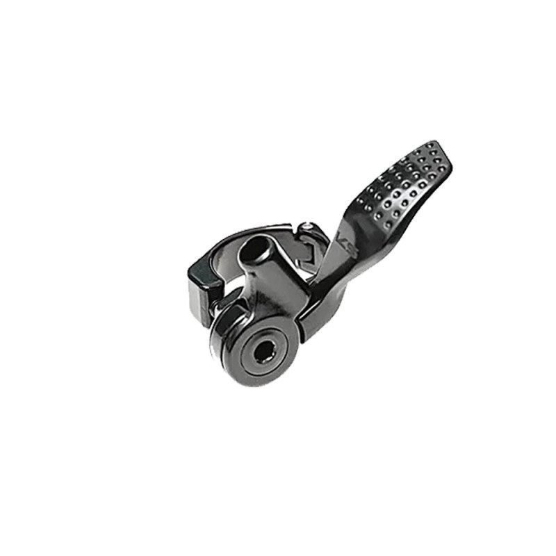 Caractéristiques - Conception ergonomique pour les cintres route et gravel - Le fonctionnement du levier est accessible depuis le drop du cintre, ou les poignées de vitesses - Compatible avec pratiquement tous les systèmes de leviers - Construction entièrement en alliage d'aluminium extrudé et forgé - Le diamètre du collier de guidon articulé de 22,2 mm est discret et dissimulé sous le ruban de guidon - Levier enduit de nitrure anticorrosion - Disponible dans le sens de montage traditionnel du câble (tête de câble au niveau du levier) - Main gauche uniquement