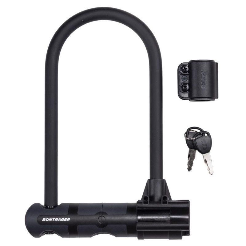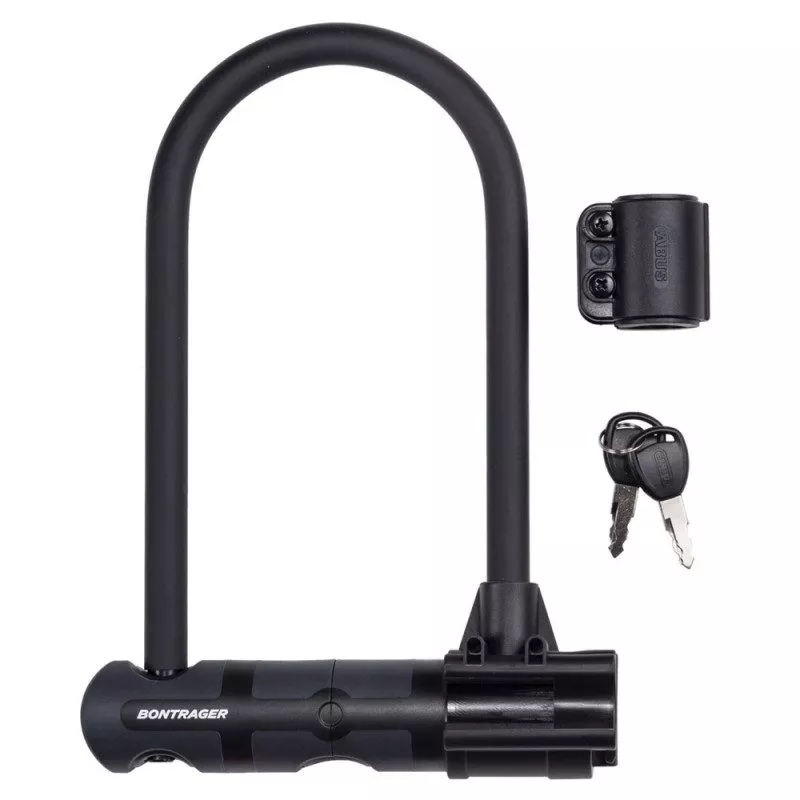 Caractéristiques techniques : - Conçu en acier trempé revenu 14 mm - Forme en U ultra-résistante - Revêtement doux pour éviter les abrasions - Barillet double couche Premium - Cadenas à double verrou - Haute résistance à la corrosion - Inclut un antivol en U, un support de montage sur le vélo et 2 clés - Note de sécurité 13 - Marque Bontrager