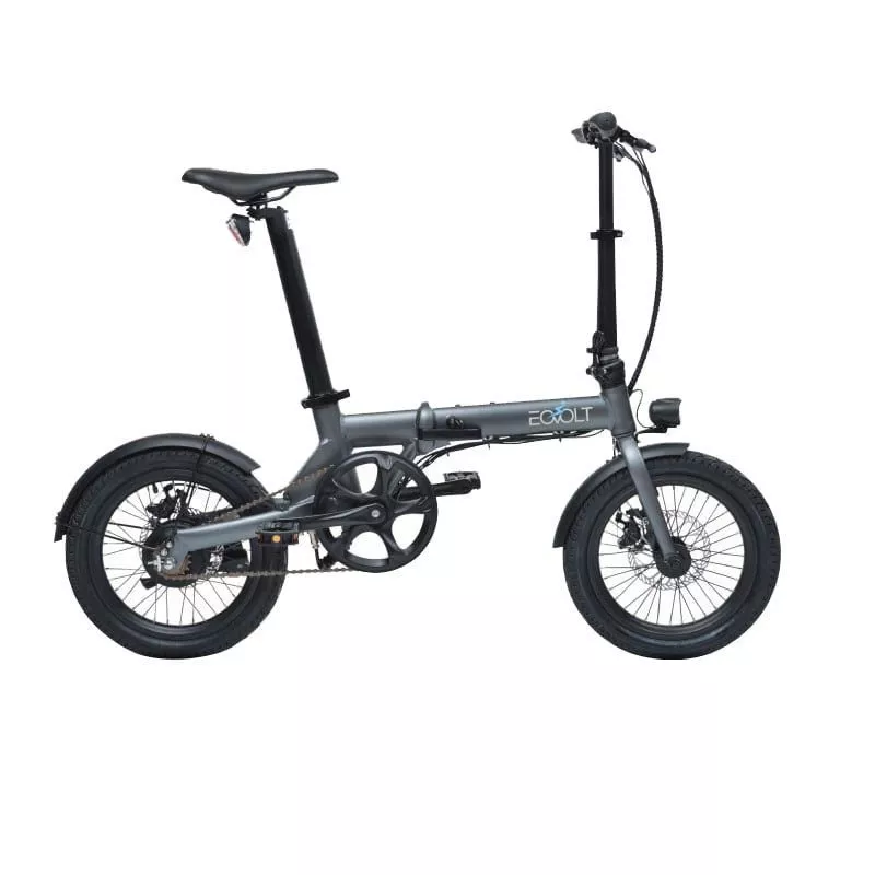 CARACTéRISTIQUES: - Moteur arrière 36V 250W Brushless - Couple Max : 40NM - Vitesse Max : 25 km/h - Assistance : 5 niveaux - Position de la batterie : tige de Selle (amovible) - Batterie LG 18650 Lithium : 36V 6,4 Ah - Temps de charge : 3-4h - Autonomie : 20-50 kms - Cadre et fourche : Aluminium 6061 - Roues : Jantes aluminium 16" - Pneus : Kenda 16 x 2.125 - Freins Disques : 160 mm AV/AR - Dérailleur 4 Vitesses - Dimensions : 97 x 130 cm - Dimensions plié : 58 x 75 x 42 cm - Poids : 14 kilos - Couleur : Anthracite