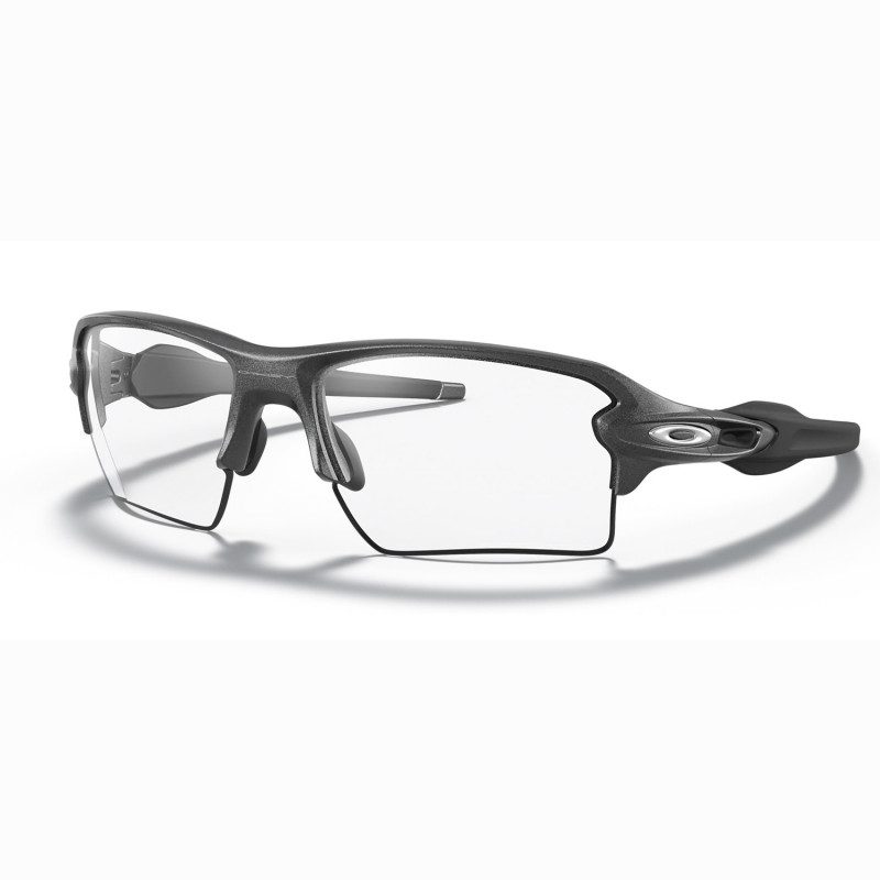 Caractéristiques techniques - Monture en O Matter léger avec logos métalliques en forme d'ellipse - Adhérence : manchons de branche et plaquettes de nez en Unobtainium - Géométrie des verres de base 8.75 avec HDO - Bord inférieur des verres décerclés - Coloris monture : Steel - Coloris des verres : Photochromic (clear à Black irridium) - Transmission de la lumière : 23% - Condition de luminosité : neutre - Couleur de base des verres : incolore - Indice de protection : catégorie 2 - Ajustement : standard - Référence Oakley : OO9188-16