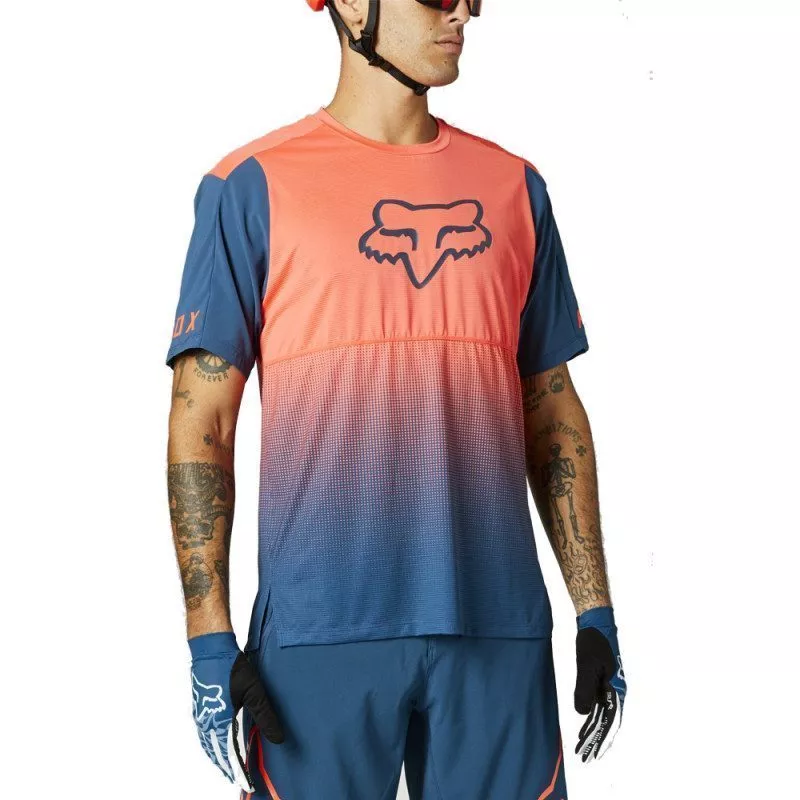 Caractéristiques - Panneaux résistants à l'abrasion placés au niveau des manches et des épaules qui vous protègent quand le sentier devient difficile - Fente au niveau de l'ourlet pour une liberté de mouvement optimale - Coutures plates pour un confort inégalé - Design signature dans le bas du vêtement sous forme de pois dans un camaïeu de gris pour donner une impression de vitesse - Conception étudiée spécifiquement pour le VTT - Panneau dorsal plus long pour la pratique du VTT - Longueur (de l'épaule à l'ourlet) : 79 cm pour la taille L - Composition : corps (95 % polyester, 5 % Lycra), manches (89 % polyester, 11 % élasthanne) - Coloris : Atomic Punch (Orange), Teal (Noir), Chili (Rouge) - Tailles : S, M, L, XL, XXL - Guide des tailles Fox