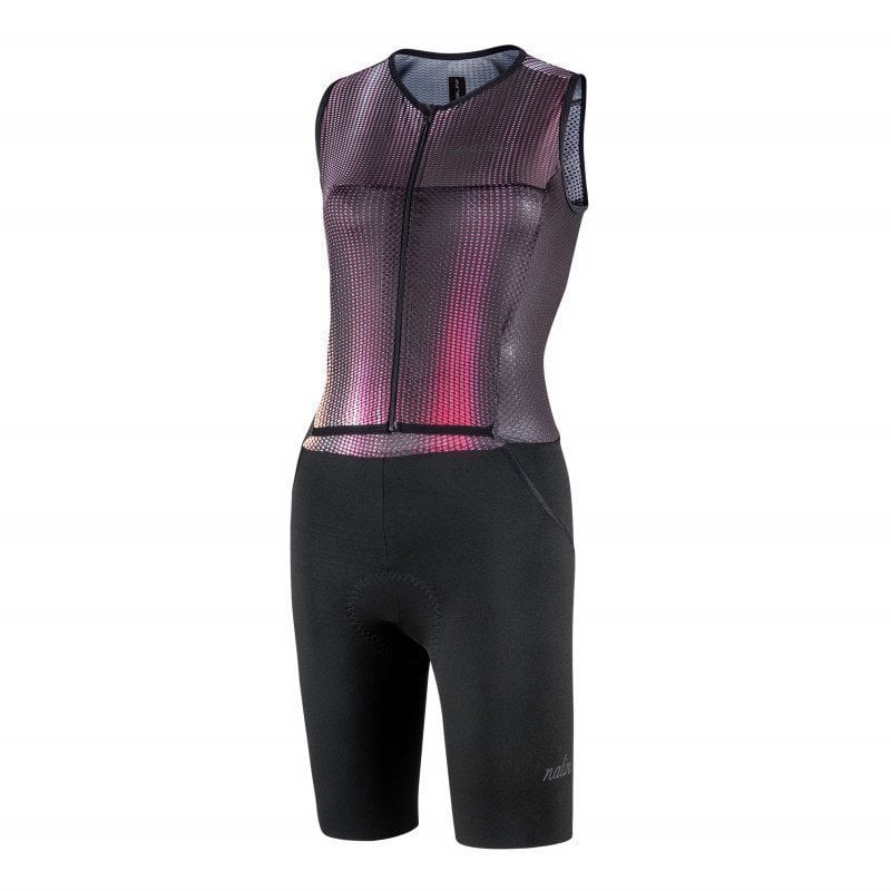 Caractéristiques techniques - Coupe Race près du corps - Excellent confort - Panneaux en mesh respirant - Zip YKK intégral - 3 poches dorsales de type oblique - Tissu avec un bon maintien sur les jambes - Version sans manches - Peau de chamois spécifique 4D Lady Comfort - Marque NaliniGuide des tailles Nalini