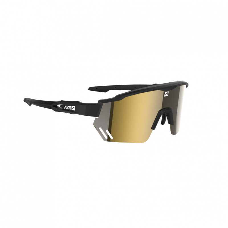 Caractéristiques techniques - Montures en Grilamid - Ecran cylindrique ultra couvrant - Pont de nez ajustable - Verre en polycarbonate ultra résistant - Finition de verre Gold - Catégorie 3 - Filtre 100% des UV - Coloris montures noir mate - Possibilité d'adapter un insert optique - Marque AZR