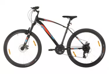 partez sur votre piste preferee avec ce velo de montagne ce velo equipe de pneus de 29 pouces vous offre une conduite souple meme sur un terrain accidente le cadre en acier et la fourche a suspension maintiennent le roulement en douceur tandis que les jantes en aluminium robustes et legeres offrent une stabilite supplementaire la motivation prend la forme d une transmission a 21 vitesses avec derailleur avant et arriere shimano le support de selle reglable sans outil permet de trouver facilement un ajustement confortable vous pouvez monter ou descendre avec une grande facilite les freins a disque sont concus pour un arret toutes conditions couleur noirmateriau du cadre de la fourche aciermateriau des jantes de roue aluminiumlongueur totale 187 cmhauteur du guidon 105 cmdiametre de la roue 72 cm 29 pouces hauteur de la selle 95 cmhauteur du cadre 48 cmfreins a disquesupport de selle a liberation rapidetransmission a 21 vitesses avec derailleur shimanol assemblage est requis