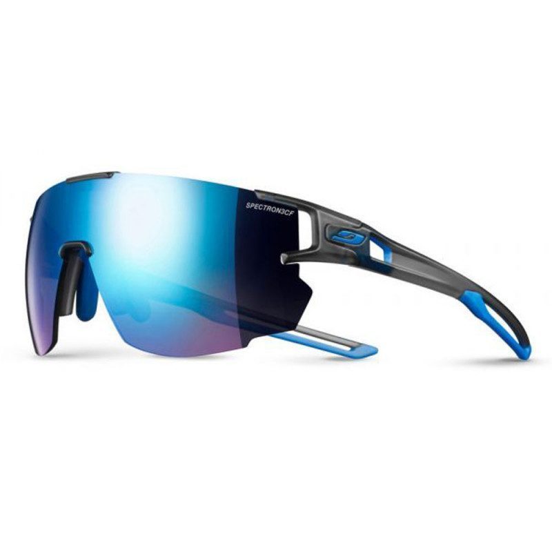 Caractéristiques techniques : - écran panoramique XXL - Verre en polycarbonate résistant - Catégorie 3 - Transmission lumineuse 12% - Inserts élastomère dans les branches - 3D Fit Nose pour un meilleur ajustement - Look aérodynamique - Coloris : gris translucide/bleu - Livrées avec une pochette microfibre