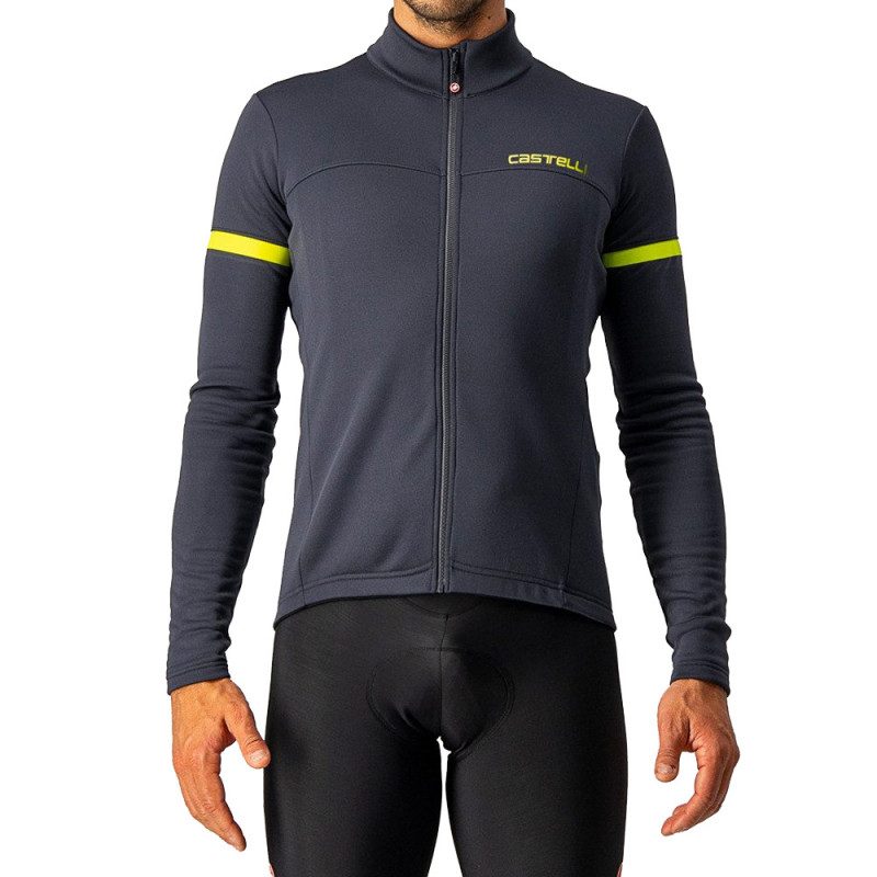 Caractéristiques techniques : - Utilisation : 12 à 18 degrés - Coupe neutre - 100% Polyester - Tissu Warmer brossé à l'intérieur - Zip intégral YKK Vislon - 3 poches dorsales - Bandes réfléchissants - Coloris : Gris-Jaune / Kaki-Gris / Noir-Bleu / Bleu foncé-Rouge / Rouge-OrangeGuide des tailles Castelli