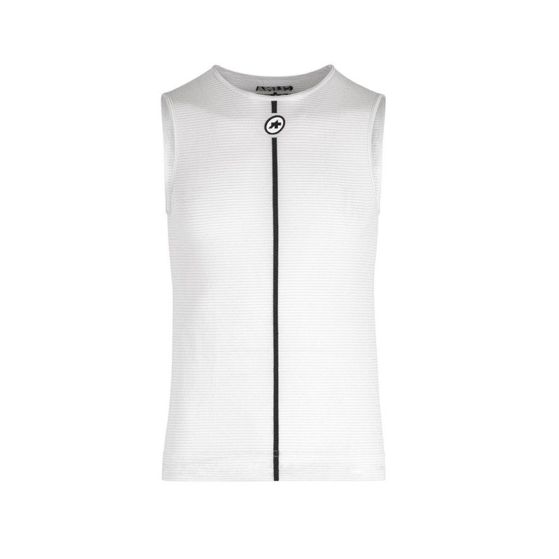 Caractéristiques techniques - Mélange de fibres ultralégères et fines - Construction sans coutures - Col en V pour faciliter la ventilation - Pour la période estivale et les fortes chaleurs - Coloris blanc - Gamme 1/3 - Version sans manches - Marque : AssosGuide des tailles Assos