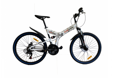 dernier modele en date ce modele constitue une veritable evolution dans la gamme blanc marine nous avons fait le choix d equiper notre modele d un cadre suspendu combinant a la fois fourche suspendue a l avant et amortisseur a l arriere depuis 1999 nous avons toujours donne la priorite au confort car si vous vous sentez bien sur votre velo pliant blanc vous l utiliserez bien plus que vous ne le pense les nouvelles suspensions sur le cadre et la fourche reglables en composite permette un confort incomparable la tige de selle a ete reculee derriere l axe du pedalier ameliorant encore les sensations et la position ergonomique du cycliste l aluminium 6061 a ete utilise pour ameliorer encore la rigidite et le confort avec egalement un gain de poids les deux freins a disque vous permettent de rouler en toutes securite 2 nouveaux systemes encore plus rapides de verrouillage et de deverrouillage du cadre avec toujours un double systeme de securite empechant l ouverture sont utilises sportif ou cycliste occasionnel avancez a votre rythme avec les 7 vitesses qu offrent le triple plateaux et la cassette 7 vitesses de la roue arriere caracteristiques cycle du 26pm4 marque blanc marine cadre suspendu aluminium 6061 soudures tig suspensions dual confort durete reglagle en fonction du poids fourche suspendue shock block suntour crv 8 nombre total de vitesses 7 vitesses pedalier simple plateau prowheel 42 pedalier specifications prowheel mc ac26 152mm protection pedalier oui derailleur arriere shimano tz50 roue libre pignon shimano mf tz21 arceau de protection du derailleur oui nombre de dents roue libre 14 16 18 20 22 24 28 dents poignet changement vitesse derailleur shimano tournante 7 vitesses shimano 7 vitesses sl tx30 7r freins avant a disque a triage laterale tektro freins arrieres a disque a triage laterale tektro pedales resine pliante droite gauche potence aluminium a plongueur fixe systeme de deverouillage de la potence oui guidon aluminium poignees caoutchouc confort selle royal confort bicolore tube de selle aluminium anodise noir 330mm x 27 2mm jantes aluminium double parois nombre de rayon 36 taille des roues 26 pouces pneu emotion freeride 26 x 1 75 moyeu aluminium bequille oui garde boue oui norme velo en14764 dimensions garanties et options dimensions depliees 186 x 69 x 113 cm hauteur selle mini maxi empattement 108 cm dimensions pliees 94 x 82 x 36 cm poids du velos pliant 26 pm4 13 8 kg icone poids charge maximale 160 kg icone poids garantie cadre fourche velo pliant 5 ans garantie moteur 1 an garantie batterie 1 an garantie boitier electronique 1 an sac de transport non antivol non sacoche avant non anticrevaison non porte bagage en option