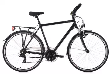 un sportif multi talents qui sera le compagnon de route ideal au quotidien le vtc homme 28 canterbury de ks cycling est parfait que ce soit pour faire un tour rapide en ville pour des entrainements plus longs ou encore pour des sorties en chemins tout terrain moderes le cadre noir en aluminium est combine a des details gris rehaussant la couleur du cadre le garde chaine transparent et le guidon multiposition completent le design avec les 21 vitesses offertes par le derailleur shimano vous n aurez aucun probleme sur les deniveles le guidon multiposition vous permet de changer le placement de vos mains et votre position de conduite pour un confort maximal la fourche suspendue adoucira les passages un peu accidentes l eclairage a dynamo vous permettra de rentrer tard en toute securite des freins v brakes assurent le freinage a l avant comme a l arriere le canterbury sera ainsi un excellent moyen de transport dans la vie de tous les jours en ville ou hors des routes cadre aluminium taille de cadre 58 cm couleur noir fourche suspendue zoom tige filetee 1 1 8 jeu de direction pour fourches filetees potence reglable en aluminium guidon acier multi positon moyeux moyeux plein jantes aluminium a double paroi avec indicateur d usure pneus trekking bande reflechissante 700x35c 37 622 vitesses 21 vitesses derailleur ar shimano tourney derailleur av shimano 3 vitesses leviers de vitesses poignees tournantes shimano revoshift sl rs 35 pignon roue libre 7 vitesses 14 28 dents pedalier pedalier en acier 3 plateaux 28 38 48 dents roulement de pedalier a cartouche bsa 68 pedales resine porte bagages acier clapet a ressorts charge maxi 18 kg gardes boue resine selle selle trekking tige de selle acier droit o 25 4 mm fixation de selle anneau de serrage a vis freins freins v brakes aluminium
