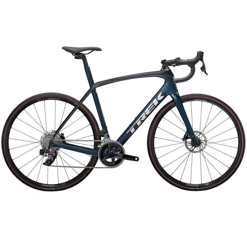 CARACTéRISTIQUES TECHNIQUES : - Cadre Carbone OCLV Série 500 - Technologie IsoSpeed avant & arrière - Manettes : SRAM Rival eTap AXS, 12 vitesses - Pédalier : SRAM Rival AXS, 46/33, DUB - Dérailleur : SRAM Rival eTap AXS - Boitier pédalier : SRAM DUB, T47 fileté, roulement interne - Cassette : SRAM XG-1250, 10-36, 12 vitesses - Chaine : SRAM Rival - Disque de frein : SRAM Paceline, arrondi, centerlock, 160 mm - Selle : Bontrager P3 Verse Comp, rails en acier - Tige de selle : Tête de mât de selle interne carbone Bontrager, fixation intégrée pour éclairage - Cintre : Bontrager Elite IsoZone VR-SF, alliage, 31.8 mm, reach de 75 mm, drop de 128 mm - Potence : Bontrager Pro, 31,8 mm, compatible Blendr, 7 degrés - Pneu : Bontrager R3 Hard-Case Lite, Tubeless Ready, tringle en aramide, 120 tpi, 700x32C - Roues : Bontrager Paradigm Comp 25, Tubeless Ready, largeur de jante de 25 mm - Sacoche pochette de rangement pour intérieur du cadre - Compatible accessoires Blendr - Coloris : Satin Dark Aquatic/Satin Trek Black - Poids : 9,14 kgs en taille 56 - Taille : 44 à 62cm - Marque : Trek