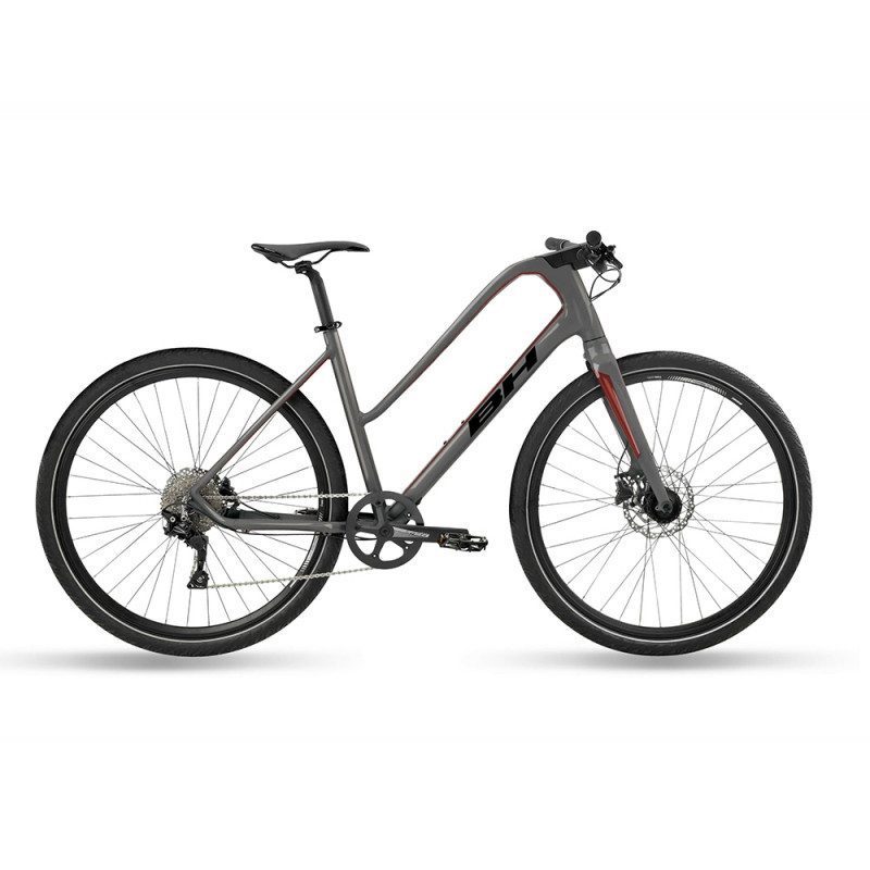 Caractéristiques techniques - Cadre en aluminium Alloy Lifestyle - Fourche en aluminium - Groupe Shimano XT 10v - Manettes Shimano Deore - Dérailleur arrière Shimano XT - Pédalier mono-plateau FSA TEmpo 42 dents - Cassette Shimano Deore - Freinage à disque hydraulique Sh MT200 - Roues en aluminium Ready Alloy - Pneus Continental Contact Cruiser - Selle Velo Lite - Pédales plates en aluminium - Géométrie unisexe - Livré avec éclairages avant et arrière, garde-boues et béquille - Coloris gris et rouge - Marque BH