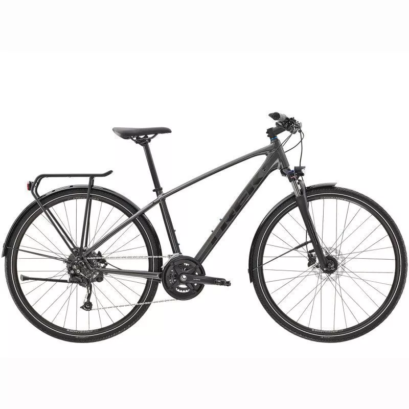 Caractéristiques techniques : - Cadre : aluminium Alpha Gold, compatible DuoTrap S, acheminement interne des câbles, fixations pour porte-bagages et garde-boue, freins à disque à fixation Post-Mount, fixation pour béquille, QR 135x5 mm - Fourche : SR Suntour NEX, ressort hélicoïdal, précontrainte, blocage hydraulique, QR 100x5 mm, débattement de 63 mm - Roues : Bontrager Tubeless Ready Disque, 32 trous, valve presta, QR 5x100 mm, QR 135x5 mm - Pneus : Bontrager GR1 Expert, Hard-Case Lite, tringle rigide, 60 tpi, 700x40C - Manettes vitesse : Shimano Acera M3000, 9x2 vitesses - Dérailleur avant : Shimano Acera T3000, collier 34,9 mm, top swing, double tirage - Dérailleur arrière : Shimano Alivio M3100, longue chape - Pédalier : Shimano MT210, 46/30, protège-chaîne - Cassette : Shimano HG200, 11-36, 9 vitesses - Pédales : Wellgo M141, corps en résine, cage en alliage - Selle : Bontrager H1 - Tige de selle : Alliage Bontrager, 27,2 mm, déport de 12 mm, longueur de 330 mm - Cintre : Bontrager Comp Lowriser, alliage, 31,8 mm, élévation de 15 mm - Potence : Bontrager Elite, 31,8 mm, compatible Blendr, 7 degrés - Freins à disque : Freins à disque hydrauliques Shimano MT200 - Couleur : Factory Orange - Poids : 13.45 kg (M) - Tailles : S, M, L et XLLa taille S présente une forme légèrement différente au niveau du slooping avant d'arriver sur le tube de selle et permettre la compatibilité entre la taille et les roues de 700.
