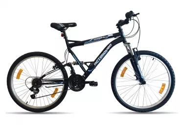 Vélo livré monté et contrôlé à 80%      Vélo livré monté et contrôlé à 80% Votre vélo sera livré en carton assemblé et contrôlé à 80%. Avant de pouvoir profiter de votre vélo, il ne reste plus qu'à assembler quelques composants : guidon, pédales, roue avant, et vérifier les points suivants :   Réglage du dérailleur avant  Réglage du dérailleur arrière  Réglage de la position  Serrages et points de sécurité   L'option de montage à 100% évoqué au début de cette vidéo n'est pas disponible sur les vélos vendus par nos vendeurs partenaires     Guide d'achat    VTT 26" Downhill "Actimover" tout suspendu Mixte - Cadre acier avec suspension centrale - Fourche télescopique - 18 Vitesses par poignées Gripshift Shimano - Roue libre 6 vitesses Shimano - Dérailleur arrière TY21 Shimano - Potence Headset - Freins avant & arrière V-Brake acier - Leviers de freins en Aluminium - Jantes aluminium avec attache rapide avant - Pneus noirs - Selle avec blocage rapide - Sonnette - Béquille - Eclairage à piles fournies - Montage à 85%