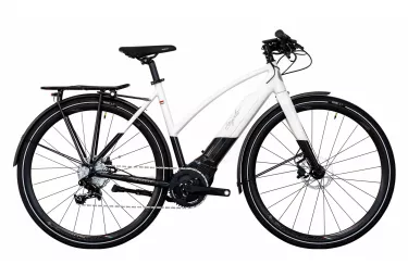 le nomades est un velo electrique de ville qui offre confort et praticite cadre en aluminium garde boue porte bagages feux avant et arriere supernova position adaptee pour la conduite urbaine equipe du moteur polini ep3 le nomades permet d atteindre vos rendez vous en toute liberte d eviter le trafic de pedaler dans les montees sans s essouffler tout en prenant soin de vous et de l environnement l assistance ajoute sa puissance electrique a la votre jusqu a 25km h au dela c est uniquement la force du coup de pedale ou le profil de la route qui fait la vitesse ce vae est livre avec des roues shadow alu black les pneus pirelli cycle e gt offrent quant a eux fiabilite adherence et resistance pour une conduite urbaine alliant vitesse et securite le nomades arbore une allure urbaine elegante avec sa peinture grege ses marquages gris son systeme de cablage integre ses accessoires selectionnes parmi les plus tendances du marche en milieu urbain le nomades est l allie parfait pour vos deplacements du quotidien et meme plus puisqu il dispose d environ 150 km d autonomie les produit cadre en aluminium et fourche en carbone ud transmission sram gx 1x11 vitesses freins a disque hydrauliques magura mt4 moteur polini avec une batterie de 500 wh pour une autonomie jusqu a 150 km details cadre aluminium aluminium 6061 fourche carbone mono ud 800 carbone flat mount moteur polini ep 3 ep 3 250w couple 70 nm batterie polini ep 3 500wh 13 8 ah ecran polini dot matrix manette de derailleur sram gx 1x11 vitesses derailleur arriere sram gx 11 vitesses cassette sram 11 32 dents pedalier 1x11 e bike x polini freins magura mt4 disques roues gipiemme shadow alu black pneus pirelli cycle e gt guidon baramind bam trek hybrid advanced composite poignees xc racing light foam potence aluminium selle selle royal royal gel tige de selle aluminium accessoire eclairage av supernova eclairage ar spanniga garde boue sks alu porte bagage sks alu poids 19 5 kg coloris white