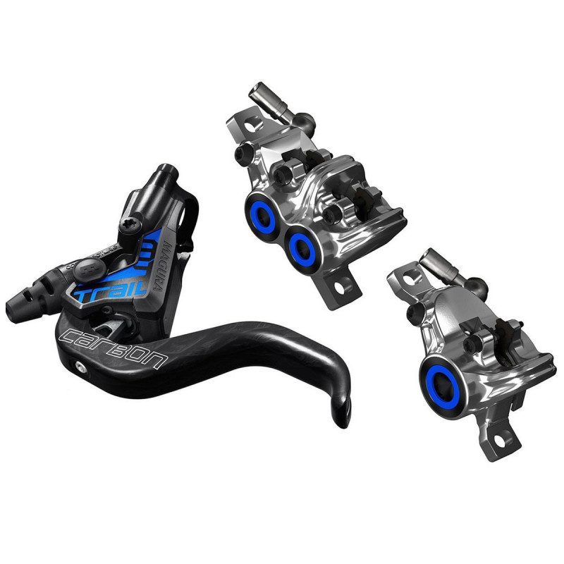 Caractéristiques techniques : - Utilisation : Trail - Matériau du corps de levier de frein : Carbotecture - Etrier monobloc aluminium - Levier deux doigts en Carbolay - Liquide de frein Royal Blood - 2 pistons arrière, 4 pistons avant - Garde réglable - Durite avant 950mm / arrière 2200mm - Disque recommandé : Magura Storm HC - Poids constructeur : 480 grammes (la paire, sans disques)Vendu par paire, sans disques.