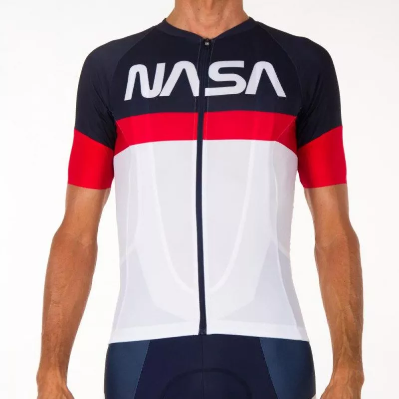 Caractéristiques techniques : - édition Nasa en quantité limitée - Ouverture zip intégrale - Maillot sans col - 3 poches dorsales - Bande silicone pour maintenir le maillot - 86% Polyester / 14% élasthanne - Coloris : blanc bleu et rouge - Tailles : S à XXL - Guide des tailles Zerod - Marque : Zerod