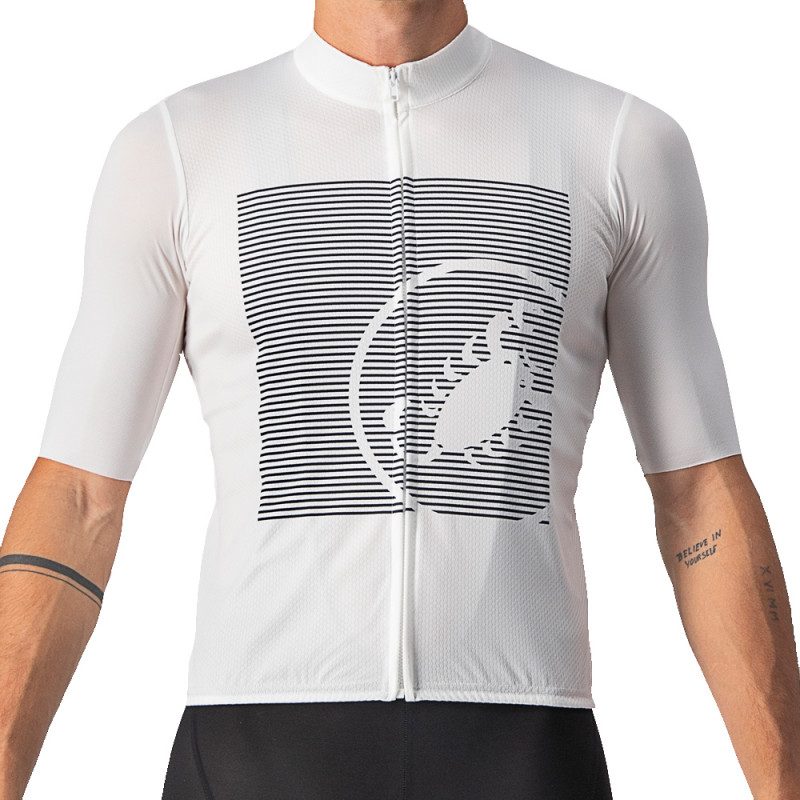 Caractéristiques techniques : - Taille : XS au 3XL - Coloris : blanc, noir, bleu clair, rouge - Poids : 133g - Température : 16-35 degrés - Tissu principal ProSecco Micromesh - Manches en tissu Velocity Rev2 - Fermeture éclair YKK Vislon - 3 poches tombantes classiquesGuide des tailles Castelli