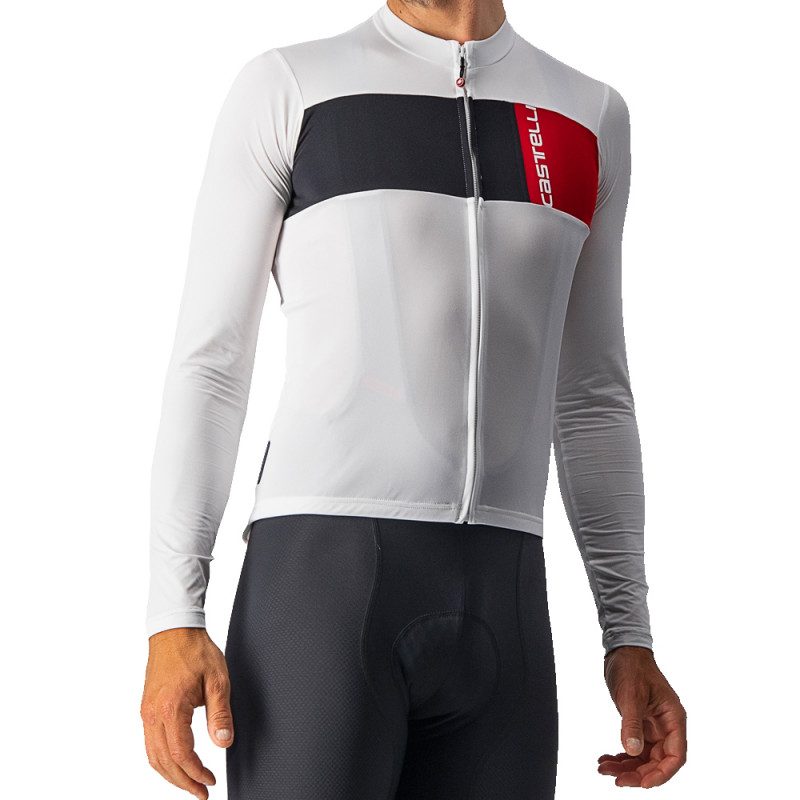 Caractéristiques techniques : - Taille : XS au 3XL - Coloris : blanc, noir, orange - Poids : 157g - Température : 14-32 degrés, idéal pour la mi-saison - Matériaux : tricot en polyester micro-piqué sur le corps, tissu Velocity Rev2 sur les manches - Fermeture éclair YKK Vislon - 3 pochesGuide des tailles Castelli
