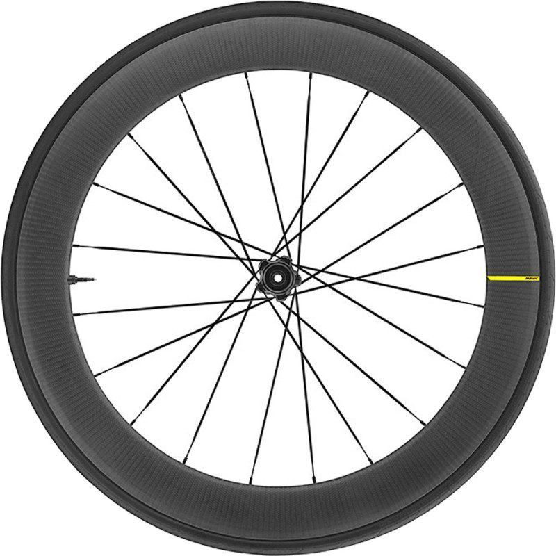 Caractéristiques techniques - Jantes en carbone tressé 3K - Profil 64 mm – Montage pneumatique UST Tubeless - ETRTO 622x19C - Moyeux en aluminium – Roulements étanches QRM+ à l'avant - Freinage à disque Centerlock - Axe avant traversant 12 mm Thru-axle convertible en blocage rapide QR - Rayons aéro en acier – 18 en radial à l'avant - Pneus Tubeless Mavic Yksion Pro UST – Gomme simple 11 Storm – Protection anti-crevaison en polyamide de tringle à tringle - 700X25C - Poids : 760 grammes sans pneuLivrées avec : Clé de réglage multifonction – Fond de jante tubeless - Valve UST et accessoires - Guide utilisateur