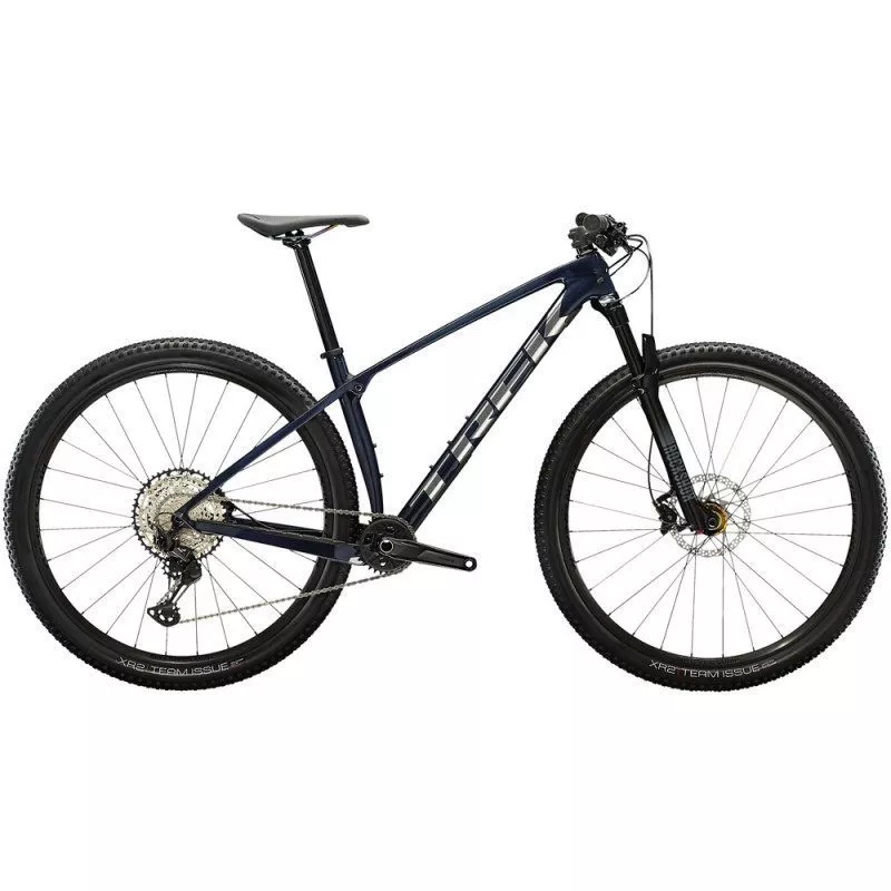 Caractéristiques : - Cadre : Carbon OCLV Mountain, Isospeed, douille de direction conique, Knock Block, acheminement des gaines en interne, Boost 148 - Fourche : Rockshox Recon Gold RL, débattement 100 mm, ressort Debon air, blocage au guidon - Roues : Bontrager Kovee Comp Alu - Pneus : Bontrager XR team Issue 29x2.20, tubeless ready - Freins : Shimano MT410 hydraulique . - Manettes de vitesses : Shimano SLX M7100 12 vitesses - Dérailleur arrière : Shimano XT M8100 chape longue, pignon 51 dts max - Pédalier : Shimano MT611 30 dents, 170mm (S) / 175mm (M-ML-L-XL-XXL) - Cassette : Shimano SLX M7100 12 vitesses 10-51 - Chaîne : Shimano Deore M6100 12 vitesses - Selle : Bontrager Arvada, largeur de 138mm - Tige de selle : Bontrager Comp 330mm (S) / 400mm (M-ML-L-XL-XXL) - Cintre : Bontrager Comp 31.8, 720mm (S-M-ML) / 750mm (L-XL) / Bontrager Line 35 750 (XXL) - Poignées : Bontrager XR trail Comp, nylon lock-on - Potence : Bontrager Rhythm Comp 31.8, 60mm (S-M) / 70mm (ML) / 80mm (L-XL) / Bontrager Elite 35, 90mm (XXL) - Poids : 11.37 kg en taille M - Couleur : Blue Carbon Smoke (Bleu foncé / Argent) - Taille des roues : 29 poucesTrek recommande un poids roulant maximal de 136 kg (poids du cycliste + poids du vélo)