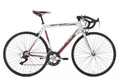 n route pour la prochaine etape le velo de course piccadillyetnbsp de ks cycling est l engin ideal pour les debutants les cyclistes de loisir et pour tous ceux qui souhaitent se remettre en selle avec ce velo vous depasserez tout le monde le design sportif est present du cadre jusqu a la selle avec son cadre blanc et ces details en noir et rouge cadre velo de course en acier fourche ahead course 1 1 8 jeu de direction 1 1 8 ahead potence ahead 1 1 8 en aluminium guidon guidon course en aluminium moyeux av a attache rapide en acier et ar roue libre en acier pneus course m traxxetnbsp 700x23c 23 622 jantes aero en aluminium changement de vitesses derailleur 14 vitesses plateaux 48 38 dents pignons 26 14 dents derailleur ar shimano rd a 050 derailleur av sunrun leviers de vitesses shimano sl a 050 pignon roue libre shimano pedalier acier avec 2 plateaux roulement de pedalier bsa a cartouche pedales resine selle selle course tige de selle acier droite o 25 4 mm fixation de selle anneau de serrage a vis en aluminium freins freins de course dual pivot leviers de freins de course en aluminium poids environ 14 kg